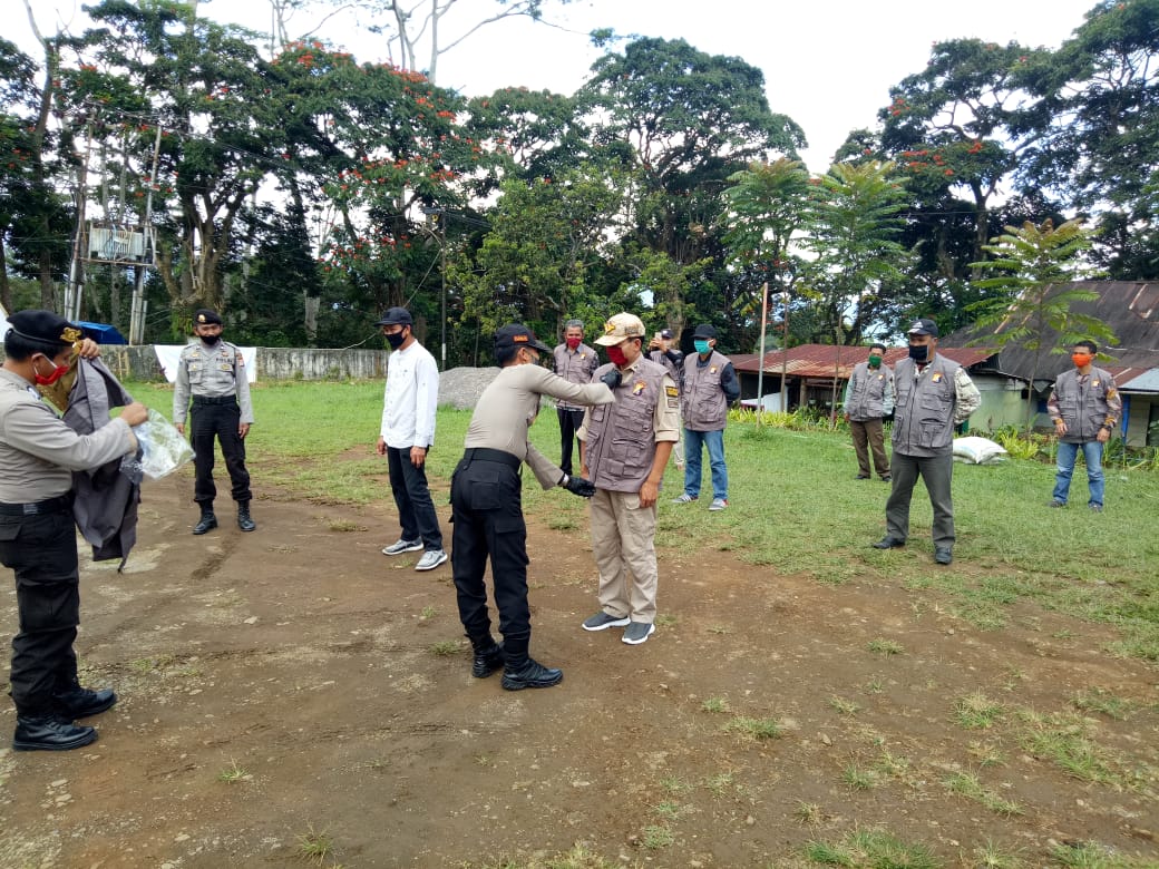 Dengan cuaca yang begitu sejuk di halaman polsek Tinggimoncong kapolsek menyematkan langsung rompi kepada para ketua Fkpm agar nantinya dapat di pergunakan dalam pelaksanaan tugas posko covid19.