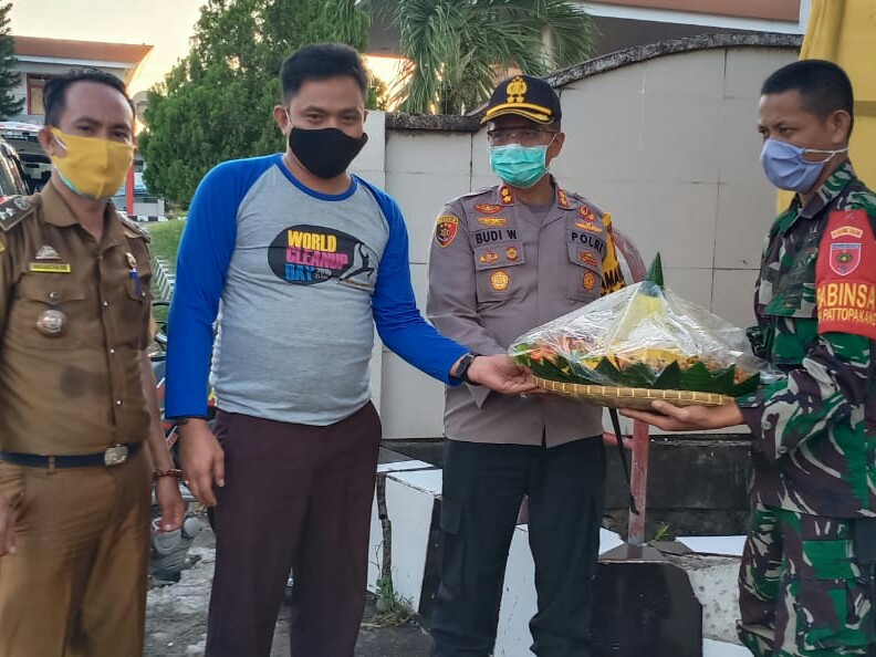Kapolres Takalar Bawakan Tumpeng Untuk Petugas Posko Covid 19