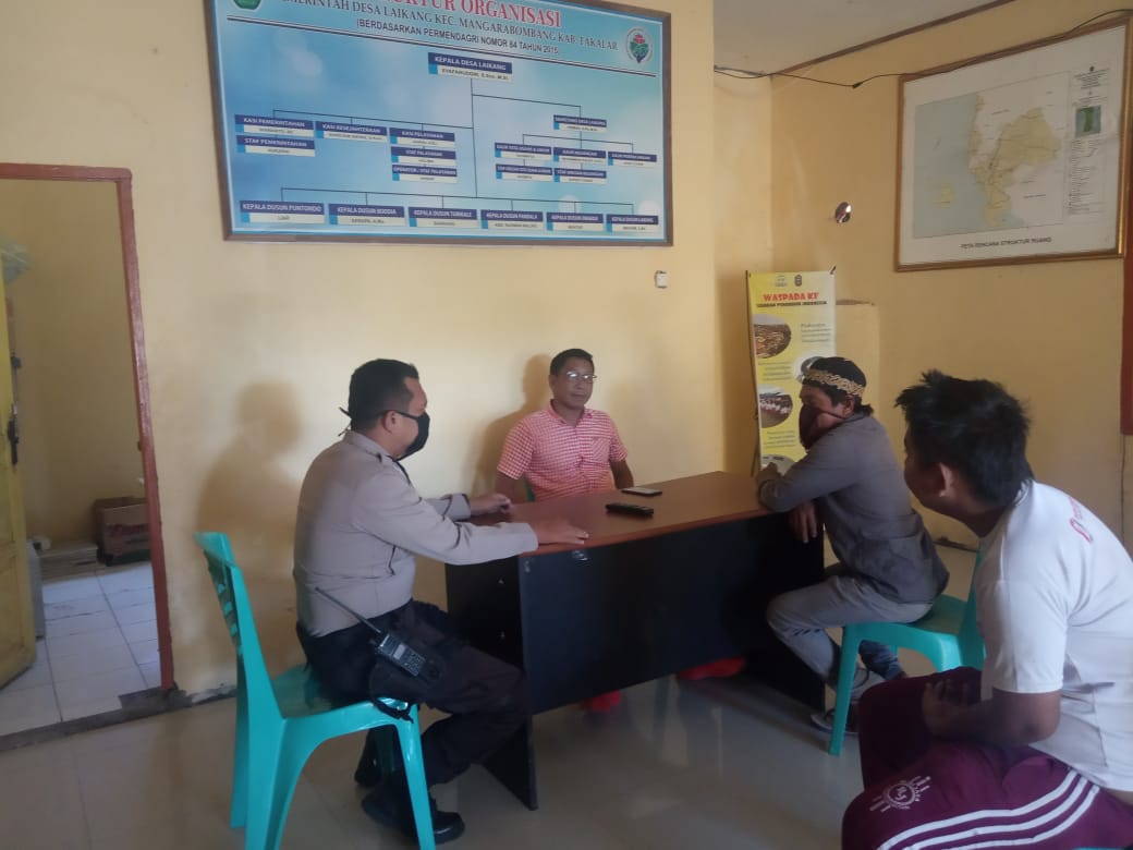 SULSELBERITA.COM. Takalar  – Anggota Bhabinkamtibmas Polsek Mangarabombang Polres Takalar untuk Desa Laikang, Bripka NAFAAH HASPAN, Melaksanakan pendataan bagi earga yang terkena dampak wabah virus covid-19 dan Menghimbau kepada warga agar dapat memutus matarantai wabah virus covid-19 mari kita bersama mendengar maklumat pemerintah dan maklumat kapolri demi kebaikan kita bersama ditengah mewabahnya pandemi virus ini kemudian jangan mudik jangan panik dan jangan piknik dan mensosialisasikan kepada masyarakat himbauan pemerintah sebagai wujud pencegahan penularan covid 19 agar masyarakat tetap tinggal dirumah dan mengajak kepada masyarakat agar selalu memakai masker pada saat betaktifitas dan menjaga jarak apabila keluar rumah dan beraktifitas apapun untuk memutus rantai penyebaran dan Penularan Virus Corona ( Covid-19), Selasa(29/04) siang.