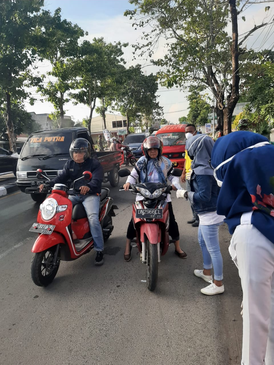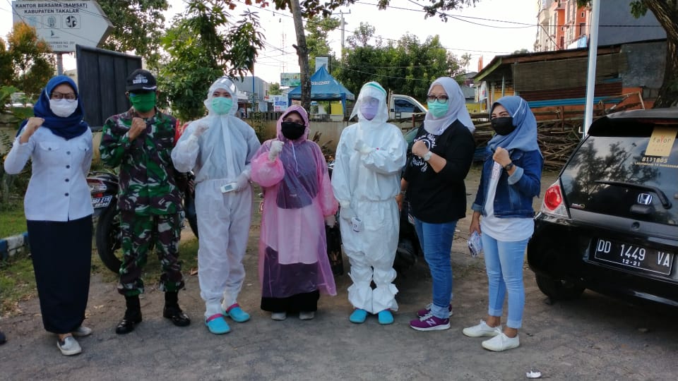 Selain itu, kegiatan ini juga bisa terlaksana dengan baik, berkat kerja sama dengsn pihak Puskesmas Pattallassang, yang mana  Kapusnya Hj. Suriani juga ikut turun langsung bersama beberapa pegawainya dengan menggunakan pakaian APD lengkap melakukan pengukuran suhu tubuh para pengguna jalan.