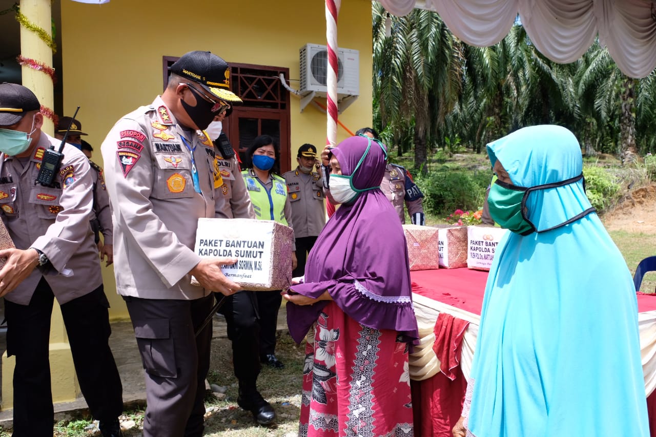 Dalam kesempatan tersebut, Kapolda Sumut juga memberikan bantuan sembako secara simbolis kepada masyarakat serta menyapa pemilik warung di perbatasan dan memberi himbauan untuk menaati protokol kesehatan agar terhindar dari wabah virus corona