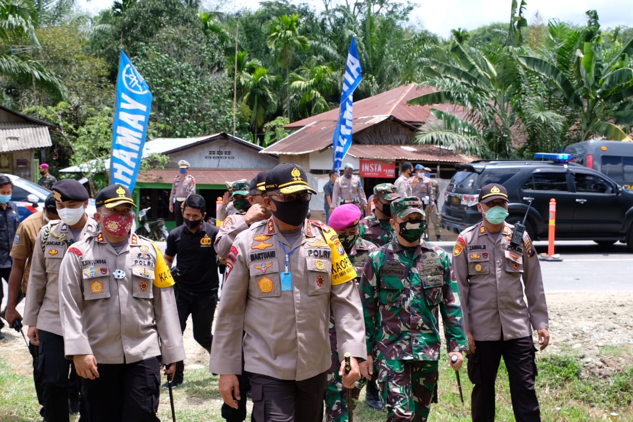 Kapolda Sumut Irjen Pol. Drs. Martuani Sormin, M.Si bersama PJU Polda Sumut, Kapolres Langkat dan unsur Forkopimda Kab. Langkat mengecek kesiapan anggota dalam melaksanakan pengamanan yang dilakukan oleh aparat gabungan dari Polri, TNI maupun petugas kesehatan