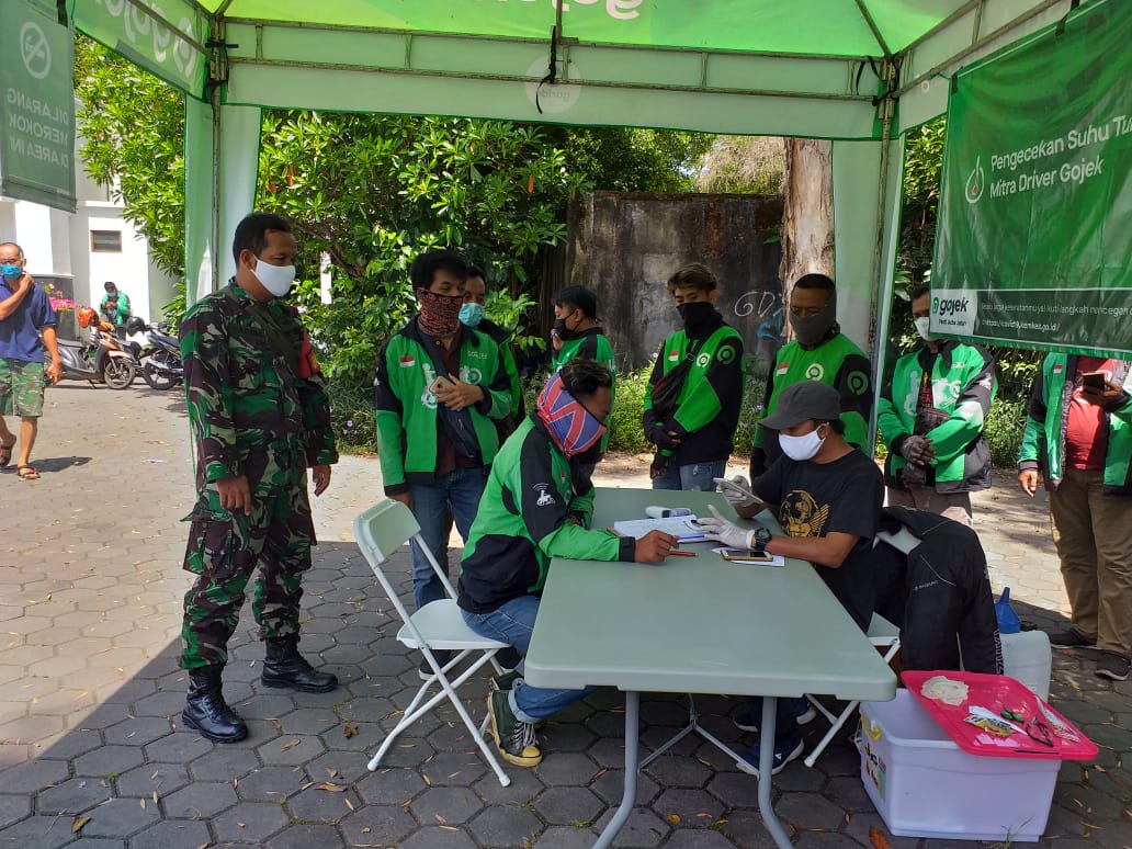 Babinsa Manahan Dampingan Screning Awal Covid-19 Bagi Mitra Gojek