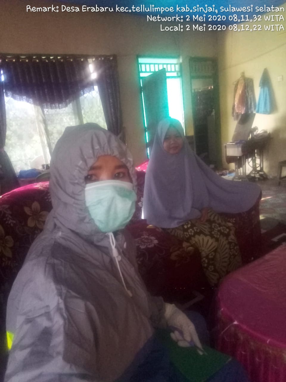 Seperti halnya yang dilakukan oleh bidan Marni yang turun ke Lapangan dengan menggunakan alat pelindung diri menggunakan masker, mantel, dan kaos tangan mengunjungi salah satu pendatang dari Makassar di Dusun Bonto Kunyi Desa Erabaru Kecamatan Tellulimpoe, Sabtu (02/05/2020)