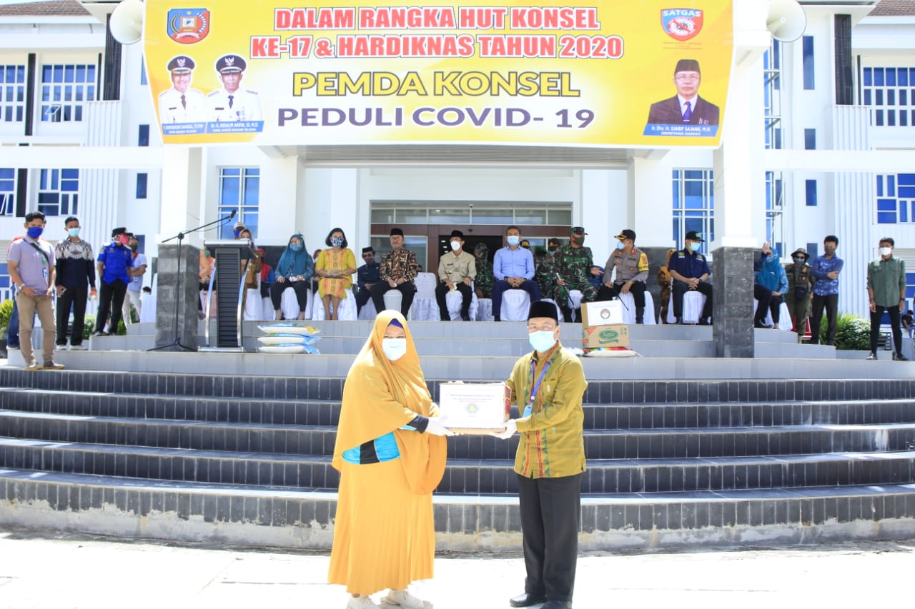 Selain peluncuran BLT DD, acara dilanjutkan dengan Penyerahan bantuan bagi warga berupa paket Sembako sebanyak 40 ribu paket yang turut diserahkan secara simbolis oleh anggota forum koordinasi pimpinan Daerah (Forkopimda) yang setelah acara langsung didistribusikan ke sejumlah Daerah di Konsel dengan menggunakan belasan armada truk dan kendaraan Dinas sebagai media untuk penyaluran bantuan tersebut.