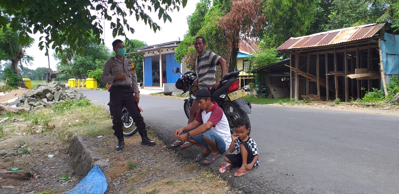 Binmas Desa Cikoang Polsek Marbo Berikan Himbauan Pencegahan Penularan Virus Corona pada Warganya