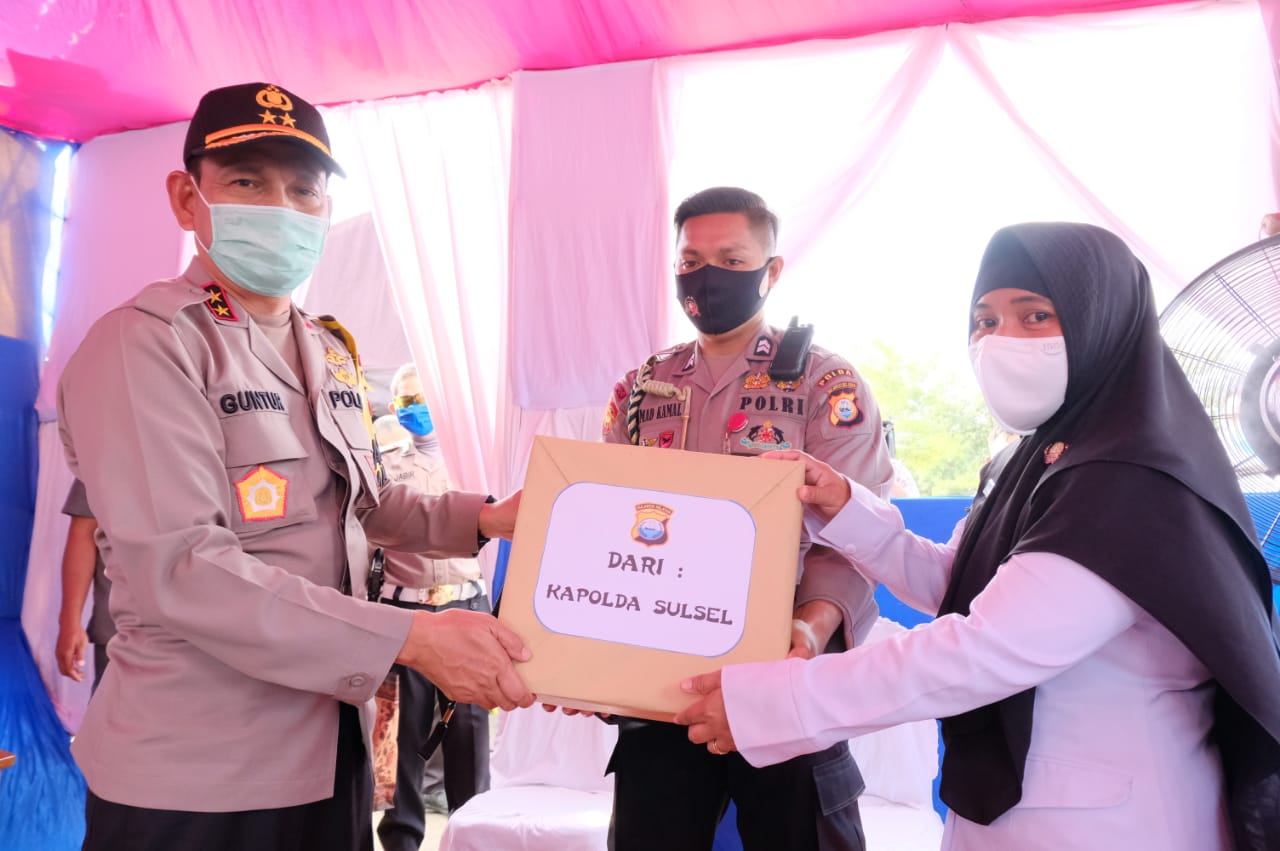Kapolda Sulsel selain mengecek kesiapan Pos Check Point juga memberikan bingkisan kepada petugas sebagai bentuk kepedulian pimpinan kepada peraonel yang sedang melaksankan tugas kemanusiaan.
