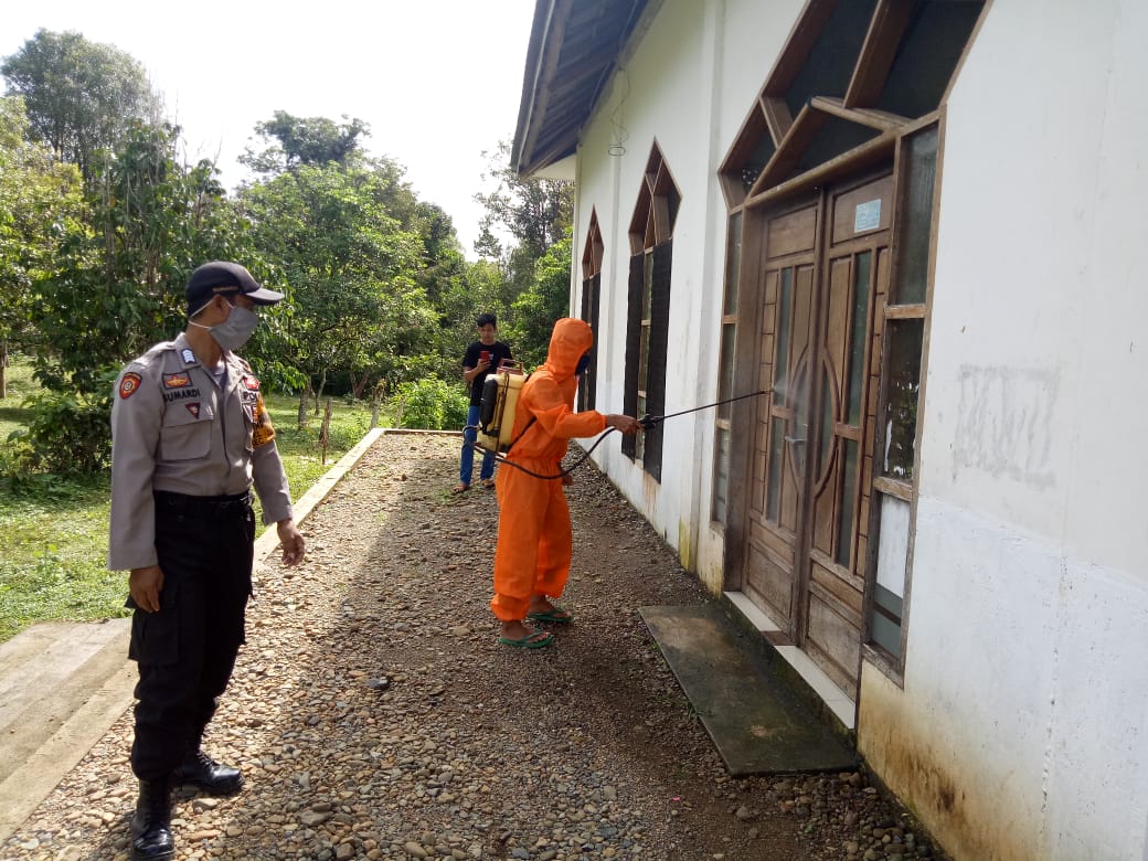 Bhabinkamtibmas Polsek Tellulimpoe Mendampingi Satgas Gabungan Tanggap Covid 19 Melakukan Penyemprotan