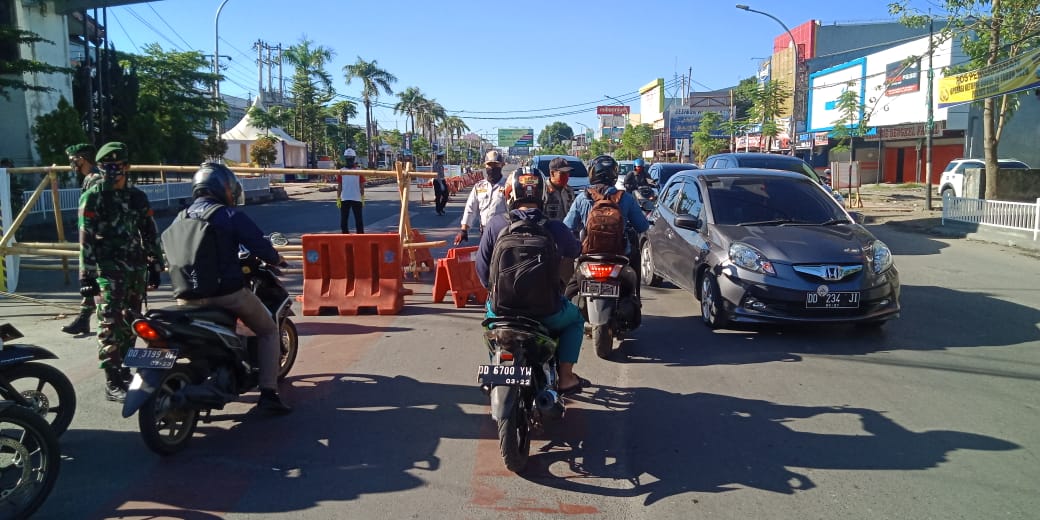 SULSELBERITA.COM. Gowa, — Satuan Lalu lintas Polres Gowa siang ini melakukan penyekatan di Jl.Sultan Hasanuddin dan beberapa jalan protokol Batas Kabupaten Gowa dan Kota Makassar. Hal ini untuk mencegah arus mudik lebaran 2020 di tengah pandemi virus corona atau COVID-19, Senin 11/05/2020.