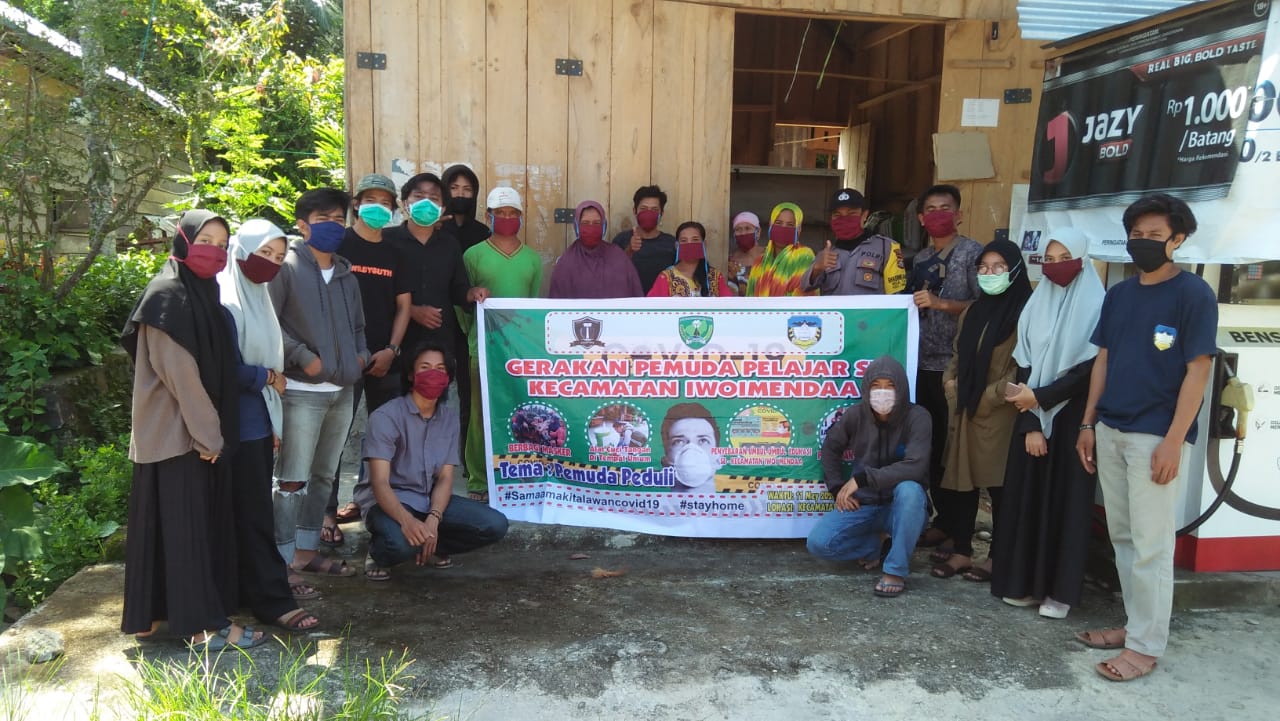 Gerakan Pemuda Pelajar Se – Kecamatan Iwoimendaa berkolaborasi Dengan Babinkamtibmas Membagikan Sembako Dan Masker Ke Masyarakat
