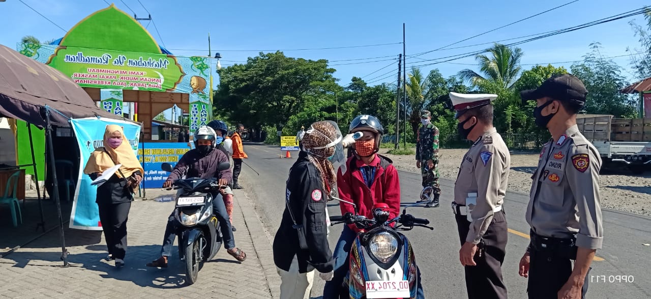 SULSELBERITA.COM. Takalar – Anggota Bhabinkamtibmas Polsek Mangarabombang Polres Takalar Binmas Punaga Bripka Risno bersama team posko OPS Ketupat Covid-19 Kab. Takalar untuk wilayah Kecamatan Mangarabombang melaksanakan kegiatan mengukur suhu tubuh dan penyemprotan antiseptic kepada setiap penumpang dan pengemudi kendaraan yang melintas di depan posko, mengajak untuk kepada orang tersebut untuk memakai masker pada saat beraktivitas atau bepergian dan menjaga jarak apabila sedang berada di dalam kendaraan atau bepergian demi memutus rantai penyebaran dan Penularan Virus Corona (Covid-19). Selasa (12/05/2020)