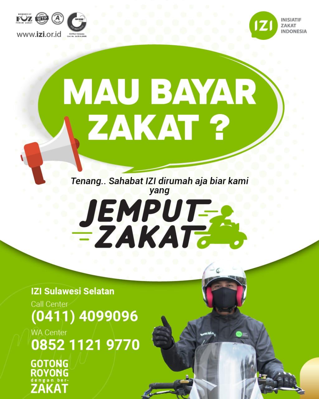 Kepala Perwakilan IZI Sulsel menghimbau kepada Masyarakat SulSel agar menunaikan Zakatnya di IZI dan mengaku telah menyiapkan Relawannya untuk menjemput Zakat Kaum Muslimin,