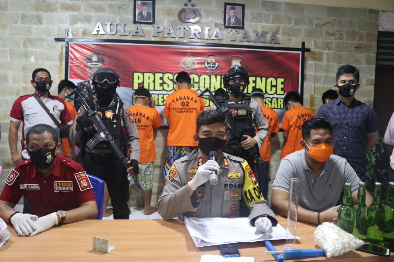 Polres Pelabuhan Makassar Rilis Penangkapan 5 Pelaku Pencurian dan Peredaran 845 Botol Miras Ilegal