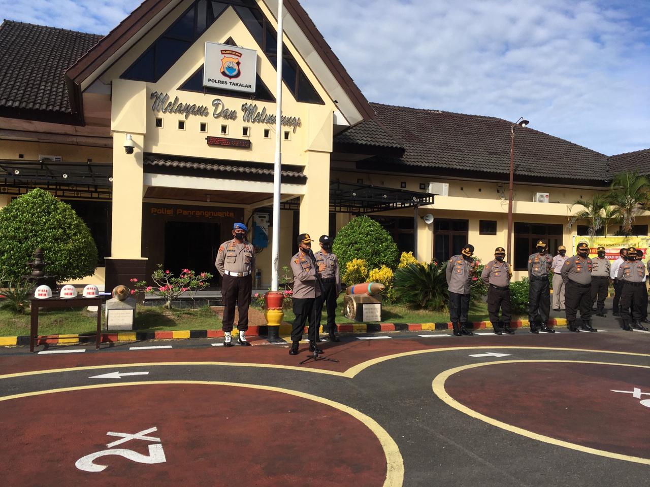 Saat apel pagi, Kapolres Takalar mengingatkan kepada seluruh personel untuk tetap menjaga kesiapsiagaan menghadapi hari libur Idul Fitri 1441 H.