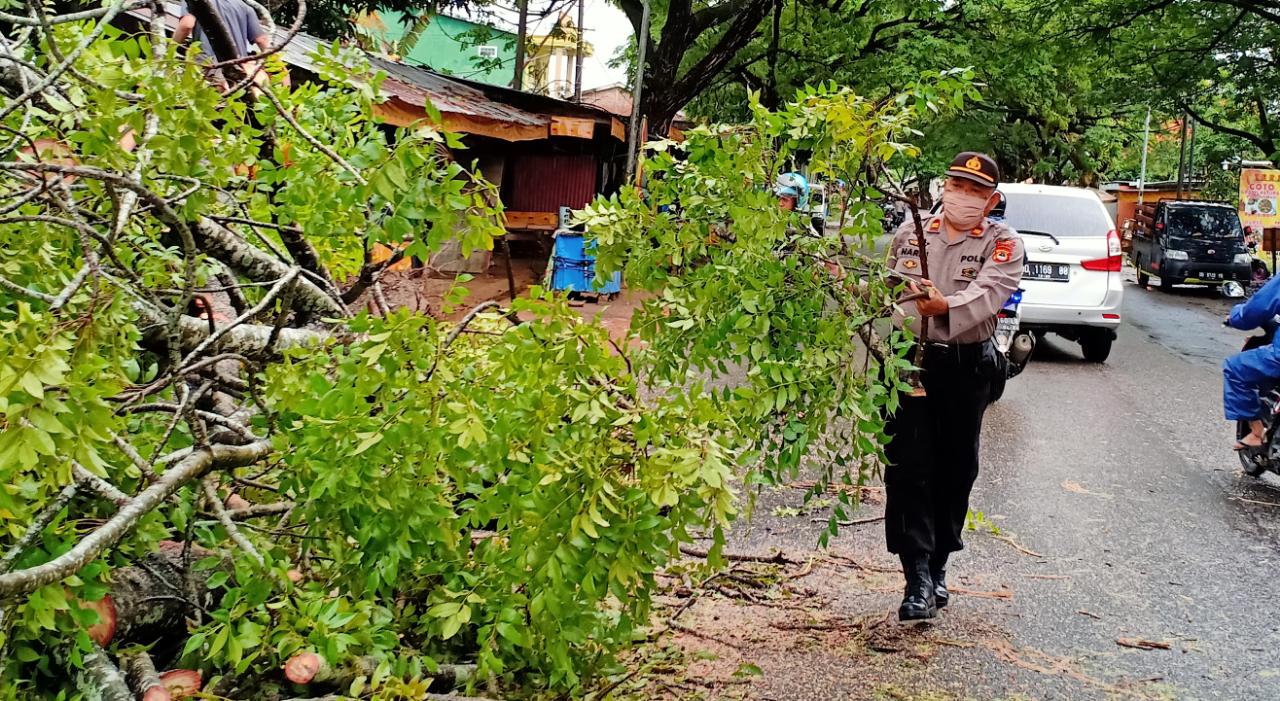Pohon Tumbang Tutupi Badan Jalan, Kapolsek Bajeng Sigap Lakukan Evakuasi