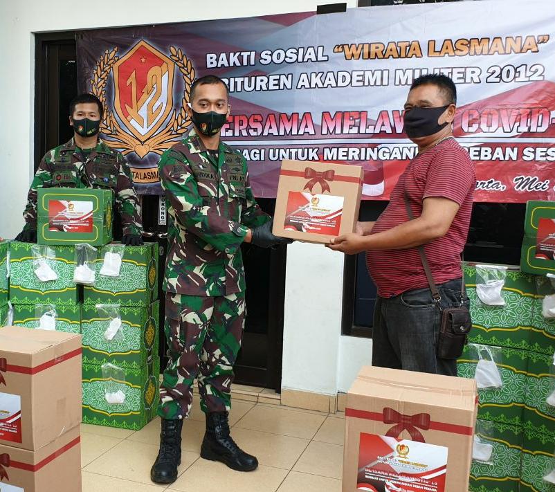 SULSELBERITA.COM. Jakarta, — Abituren Akademi Militer 2012 Wirata Lasmana menggelar bakti sosial serentak di wilayah Indonesia dengan membagikan ratusan paket sembako dan masker kepada warga yang terdampak pandemi Covid-19. Minggu (24/05/20)