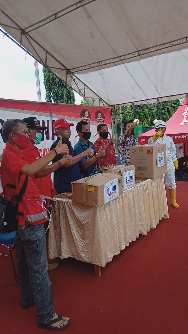 Kakandatel Gowa, Suhono bersama stafnya menyerahkan bantuan berupa Baju APD (hazmat) sekali pakai sebanyak 26 pcs, hand sanitizer 600 ml 28 botol, desinfektan 1 ltr sebanyak 10 botol dan masker logo Telkom 100 lembar di Posko relawan PMI Covid-19 yang diterima oleh sektretaris PMI, H. Agussalim. DM, SE, M.Si bersama pengurus PMI Takalar di Posko Relawan PMI depan Mesjid Agung Takalar.