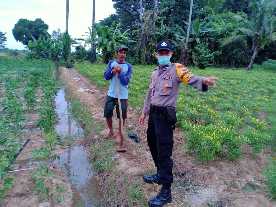 Dalam patroli dan sambangnya kali ini, Aipda Muh. Charlik berhenti sejenak dan melakukan dialog dengan para petani lombok guna menyampaikan pesan Kamtibmas.