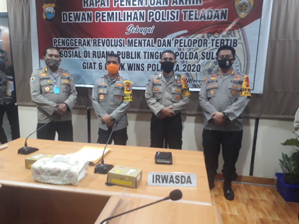 Penghargaan Polisi Teladan diserahkan oleh Wakapolda Sulsel Brigjend Pol. Halim Pagarra diterima Bripka Erwin Saputra didampingi Kapolres Takalar AKBP Budi Wahyono di ruang rapat pimpinan Mapolda Sulsel Rabu (27/05) kemarin.