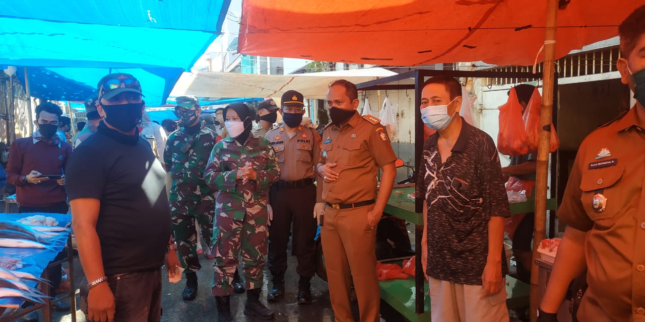 SULSELBERITA.COM. Makassar, — Dalam upaya pencegahan penularan Covid-19, Unsur Tripika kecamatan Wajo Kunjungi kegiatan sejumlah pasar, para penjual dan pengunjung pasar dihimbau untuk patuhi protokol kesehatan dalam melakukan aktifitas di pasar, Sabtu (30/05/2020).