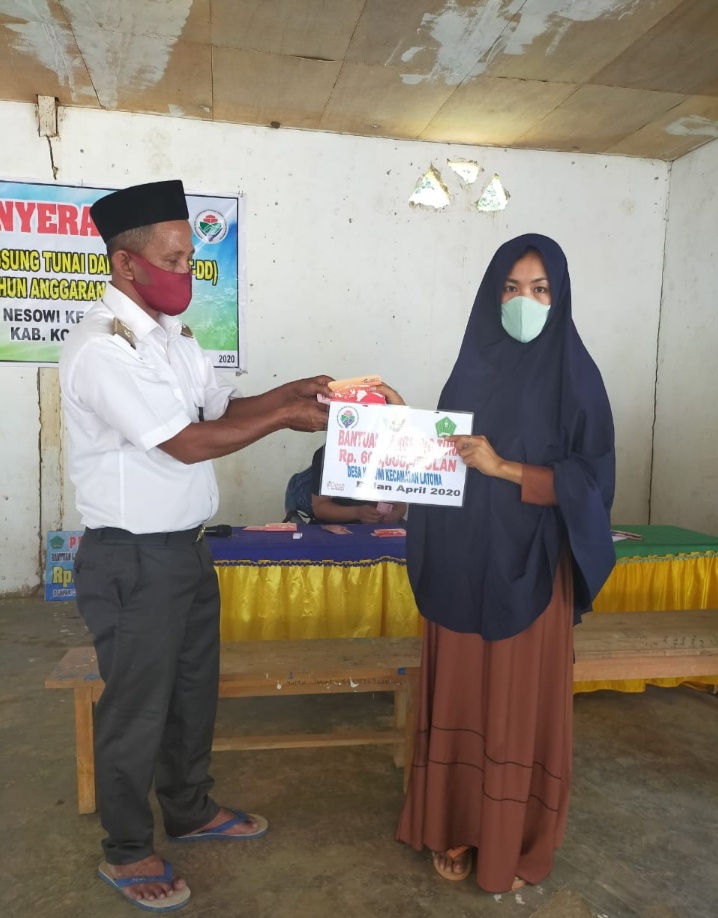 SULSELBERITA.COM. Konawe – Pemerintah Desa Nesowi Kecamatan Latoma, Kabupaten Konawe, Provinsi Sulawesi Tenggara (Sultra) Menyalurkan Bantuan Langsung Tunai Dana Desa (BLT DD) Dampak Covid 19 yang bersumber dari APBN.
