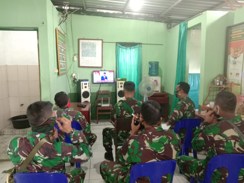 Momen inilah para Babinsa Koramil-koramil naugan Kodim 0724/Boyolali yang berada di wilayah kompak menyelenggarakan Nobar (Nonton Bareng) pidato Kepresidenan untuk pertama kalinya dalam sejarah Indonesia, upacara peringatan Hari Lahir Pancasila 1 Juni 2020 dilaksanakan dengan mengenakan masker dan dengan cara daring lewat video conference (virtual). Senin (01/06).