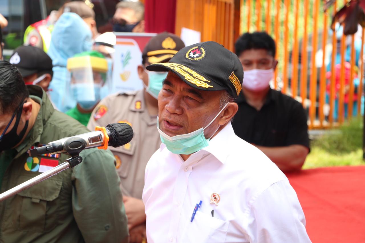 Menteri Koordinator Bidang Pembangunan Manusia dan Kebudayaan (Menko PMK) Muhadjir Effendy serta Menteri Sosial (Mensos) Juliari Batubara mengunjungi
