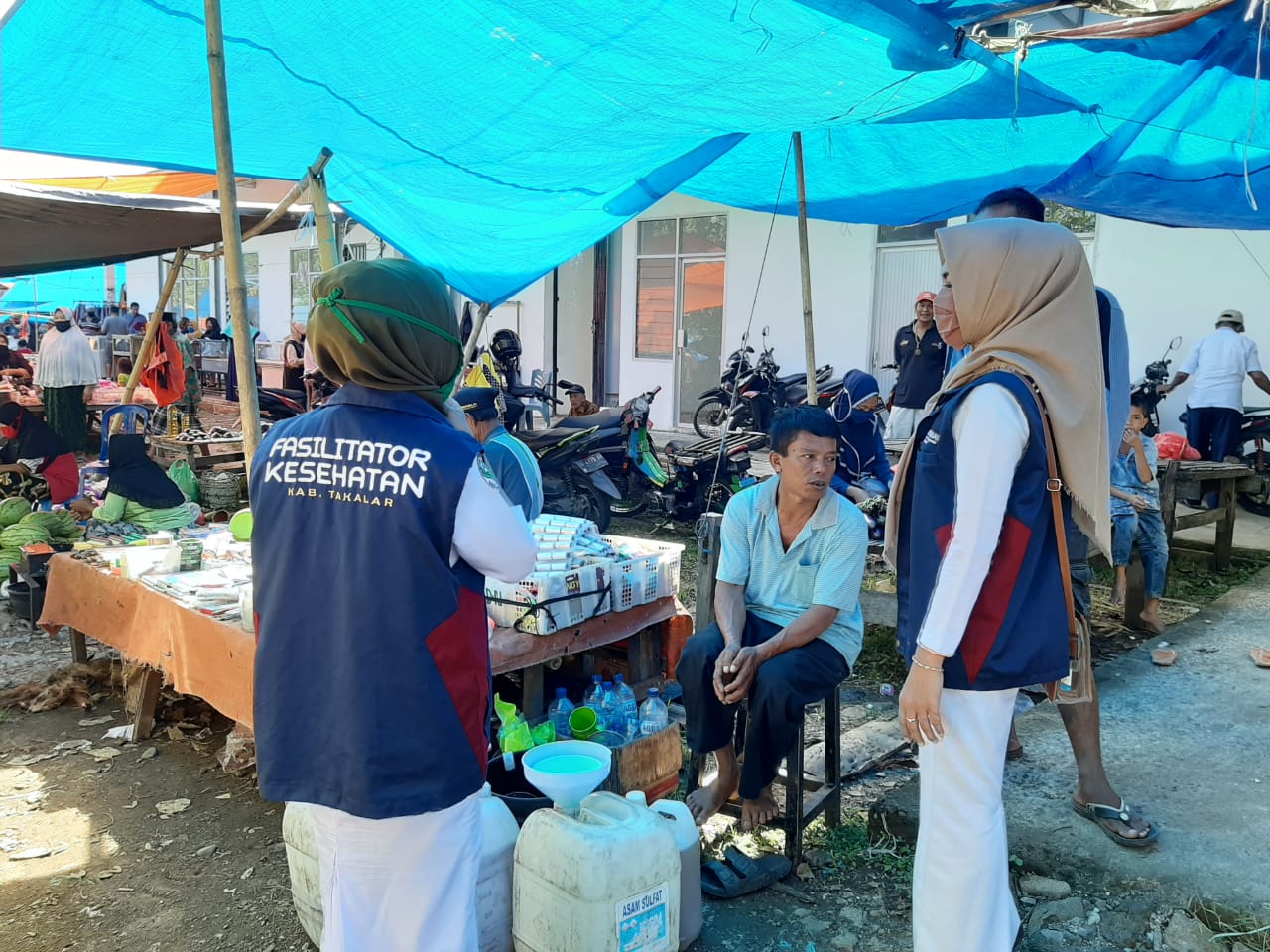 SULSELBERITA.COM. Takalar – Kepala Puskesmas Pattoppakang bersama tim promkes dan kesling beserta fasilitator kesehatan,melakukan penyuluhan keliling di masyarakat, Selasa, (2/6/2020).