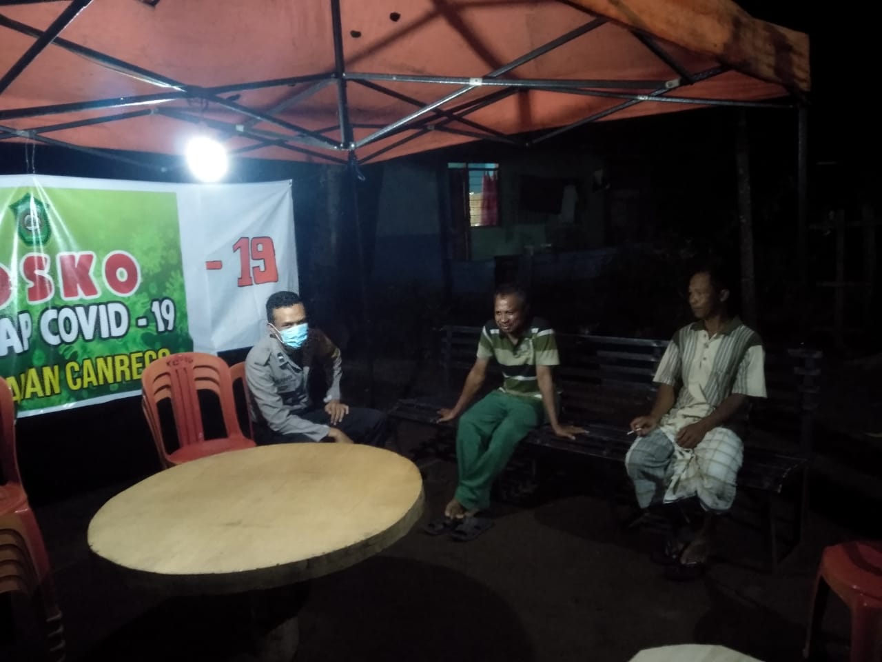 SULSELBERITA.COM. Takalar – Bhabinkamtibmas Kelurahan Cnarego Polsek Polsel Polres Takalar Aipda Sulaiman menyambangi warga binaannya dalam rangka mencegah wabah corona dengan himbau warganya di Lingkungan Canrego Kelurahan Canrego Kecamatan Polombangkeng Selatan Kabupaten Takalar, Senin (01/06/2020) sekitar pukul 20.30 wita.