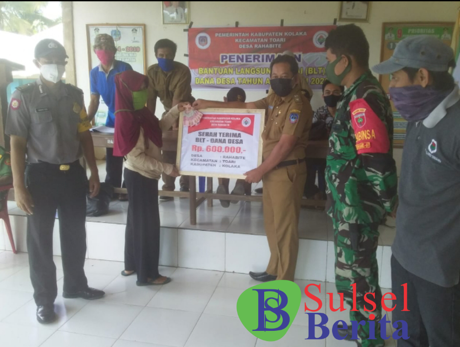 SULSELBERITA.COM. Kolaka – Pemerintah Desa Rahabite Kecamatan Taori Kabupaten Kolaka,Provinsi Sulawesi Tenggara,Salurkan Bantuan Langsung Tunai ( BLT) kepada keluarga yang terdampak Covid Disease 19(Virus Corona).Jumat 22/05/2020