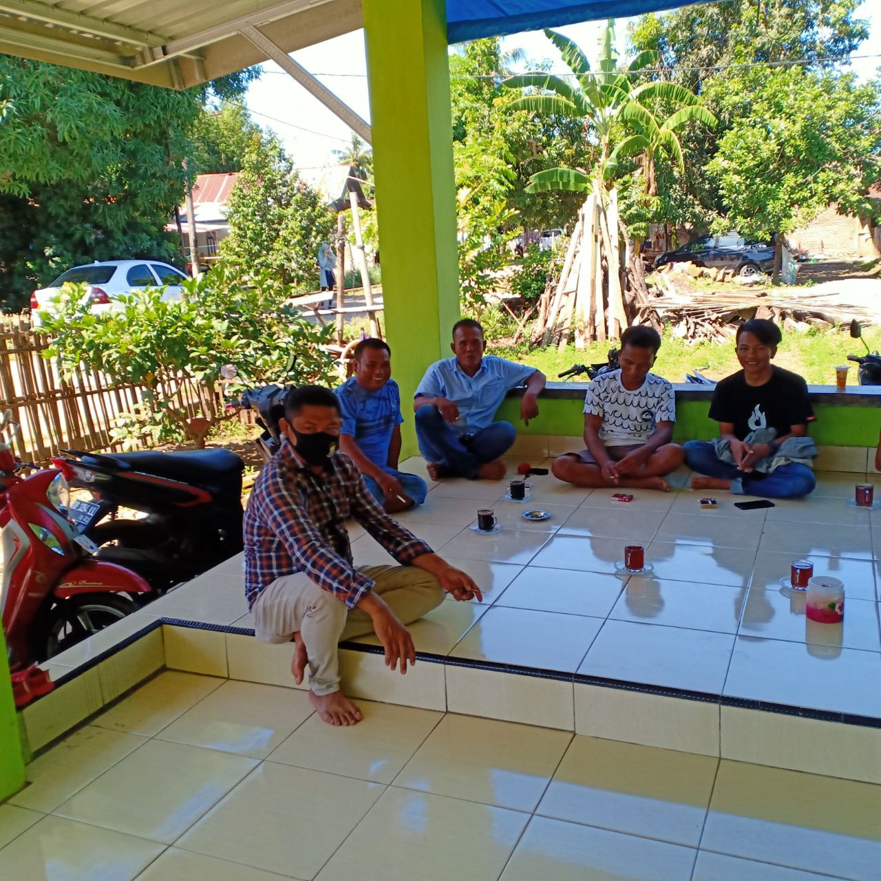 SULSELBERITA.COM. Takalar – Piket IK Polsek Galut Aipda Risal di Kelurahan Bontolebang melakukan kegiatan penggalangan dan kunjungan kepada warga masyarakat di rumah Rahman Dg Sijaya yang sedang merayakan pesta rakyat atau syukuran setelah Panen Padi,yang bertempat di lingkungan Tabaringan, Kel. Bontolebang Kec. Galesong Utara, Kab. Takalar. Kamis (4/5/2020).