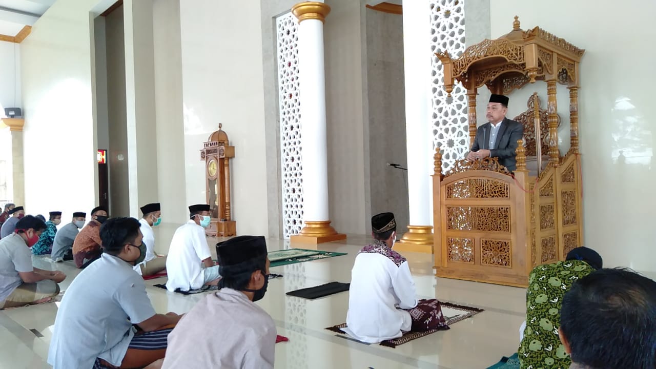 SULSELBERITA.COM. SINJAI -Suasana New normal di kabupaten sinjai ditandai dengan baca khutbah dan memimpin Salat Jumat oleh Kepala Kantor Kementerian Agama Kab.Sinjai Drs H.Abd Hafid M Talla M.AP di Masjid Islamic Center Kabupaten Sinjai yang beralamat di Lingkungan Tanassang, Kelurahan Alehanuae, Kecamatan Sinjai Utara, salat Jumat yang juga dihadiri Andi Seto Gadhista Asapa