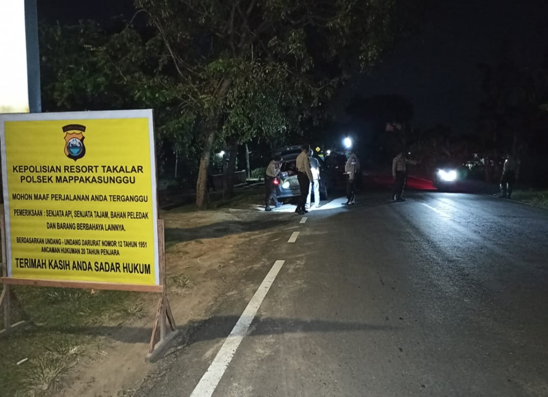 SULSELBERITA.COM. Takalar-Sabtu (06/06/2020) Pukul 22.15 hingga 23.30 wita. Personel Polsek Mappakasunggu Polres Takalar di pimpin oleh Kapolsek Mappakasunggu Iptu M. Natsir, S.Sos laksanakan pemeliharaan keamanan dan ketertiban masyarakat (Harkamtibmas) di wilayah Hukum Polsek Mappakasunggu.