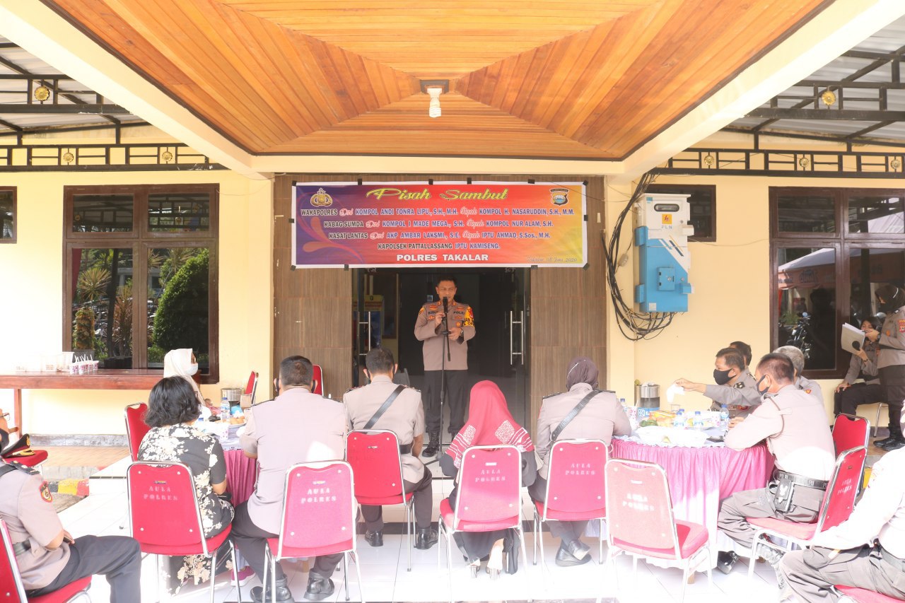 Pejabat tersebut adalah Wakapolres Takalar dari Kompol H.Andi Tonra Lipu,SH.,MH kepada Kompol H. Nasaruddin,SH.,MM, Kabag Sumda Kompol I Made Mega,SH Kepada Kompol Nur Alam,SH Sedangkan Kasat Lantas  dari AKP Ambar Laksmi,SE.,SIK kepada Iptu Ahmad,S.Sos.,MH.