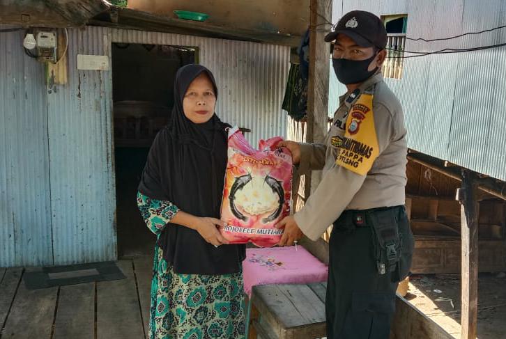Peduli Masyarakat Kurang Mampu Bhabinkamtibmas Aipda Zainuddin Bagikan Sembako Beras
