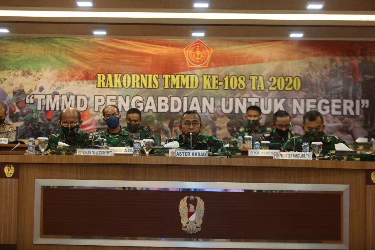 “Mari kita jadikan Rakornis TMMD ini menjadi wahana untuk berkoordinasi dan berkomunikasi secara teknis, berdiskusi, dan mensinkronkan berbagai program Kementerian/LPNK yang dapat disinergikan dalam pelaksanaan TMMD ke -108 TA. 2020 ini. Diharapkan pula dalam Rakornis ini ada saran, masukan, serta ide-ide yang kreatif, inovatif, dan konstruktif guna mendorong upaya peningkatan dan pengembangan program TMMD ke depan,” ujarnya.