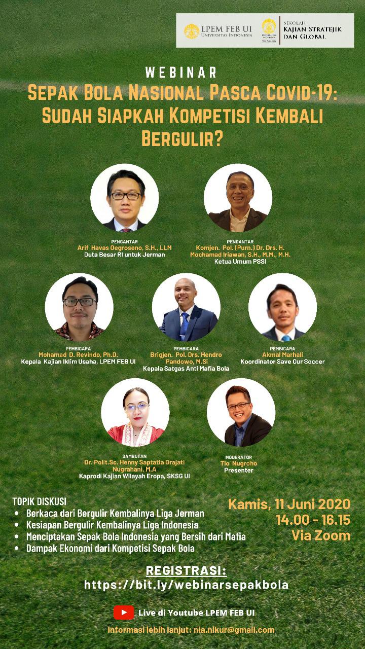 Demikian dikemukakan Arief Havas Oegroeseno dalam diskusi virtual yang diadakan oleh LPEM FEB UI bertema “Sepak bola nasional pasca Covid-19: Sudah siapkah kompetisi kembali bergulir?” di Jakarta (11/6/2020) seraya menambahkan, tes yang dilakukan sebanyak 4 juta, ini jumlah tes ketiga terbesar di dunia, nomer 1 Amerika Serikat, nomer 2 Rusia. Jerman telah membantu perawatan pasien di negara tetangganya. Kalau kita lihat perkembangan vaksin juga luar biasa, dana riset dikucurkan 3,5 miliar Euro dan tanggal 23 April 2020 sudah ada uji klinis.