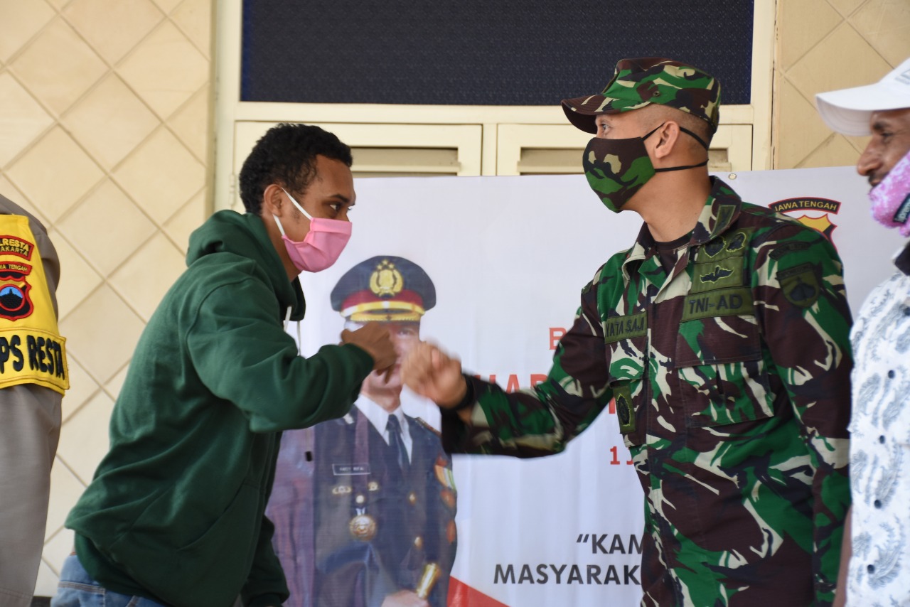 Dalam Rangka Hari Bhayangkara Ke-74, Dandim Surakarta Bersama Kapolresta Bagikan Paket Sembako Kepada Warga
