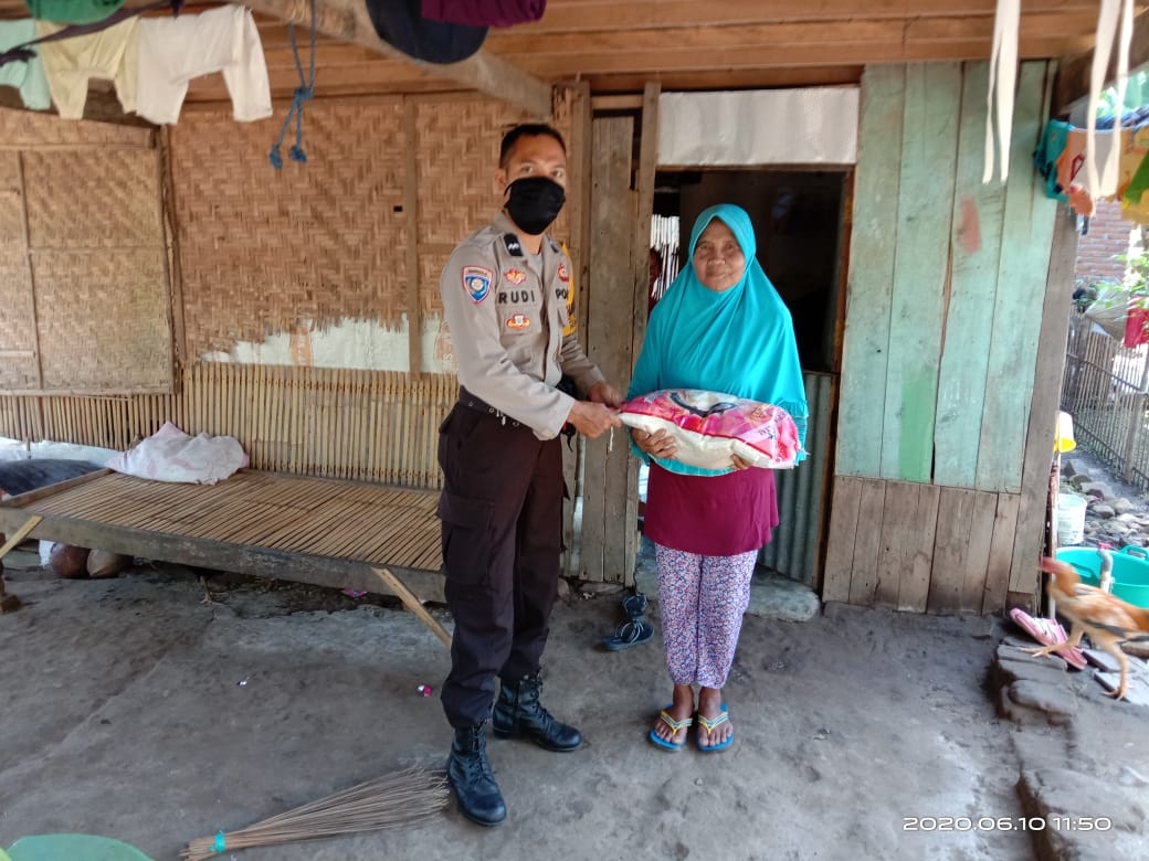 Peduli Covid-19, Bhabinkamtibmas Kelurahan Pallantikang Salurkan Sembako Beras