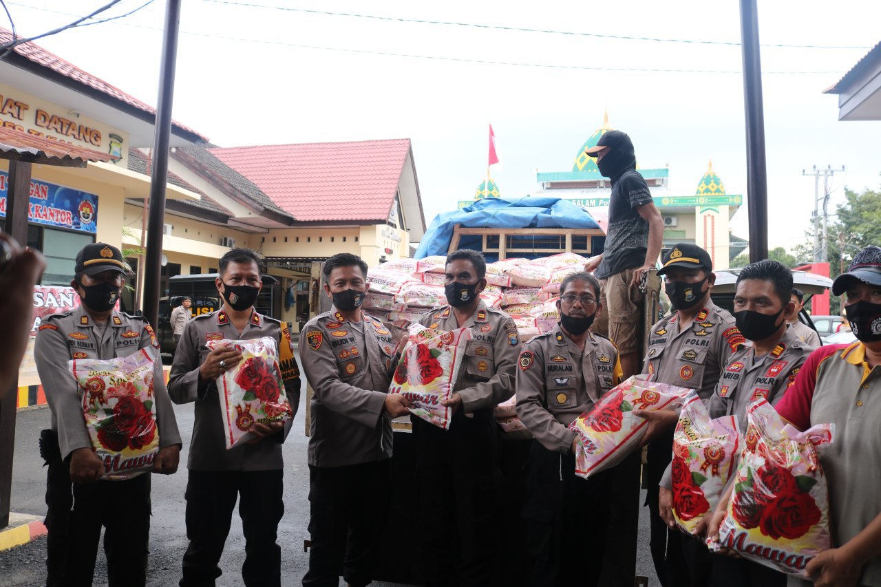 Kapolres menuturkan bantuan yang beras yang dibagikan akan kembali disebar disetiap ke Desa dan kelurahan.
