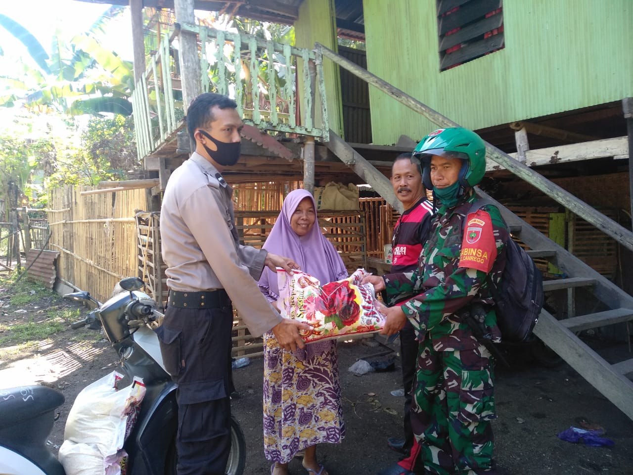 Bhabinkamtibmas Kelurahan Canrego Bagikan Beras Kepada Warga Kurang Mampu