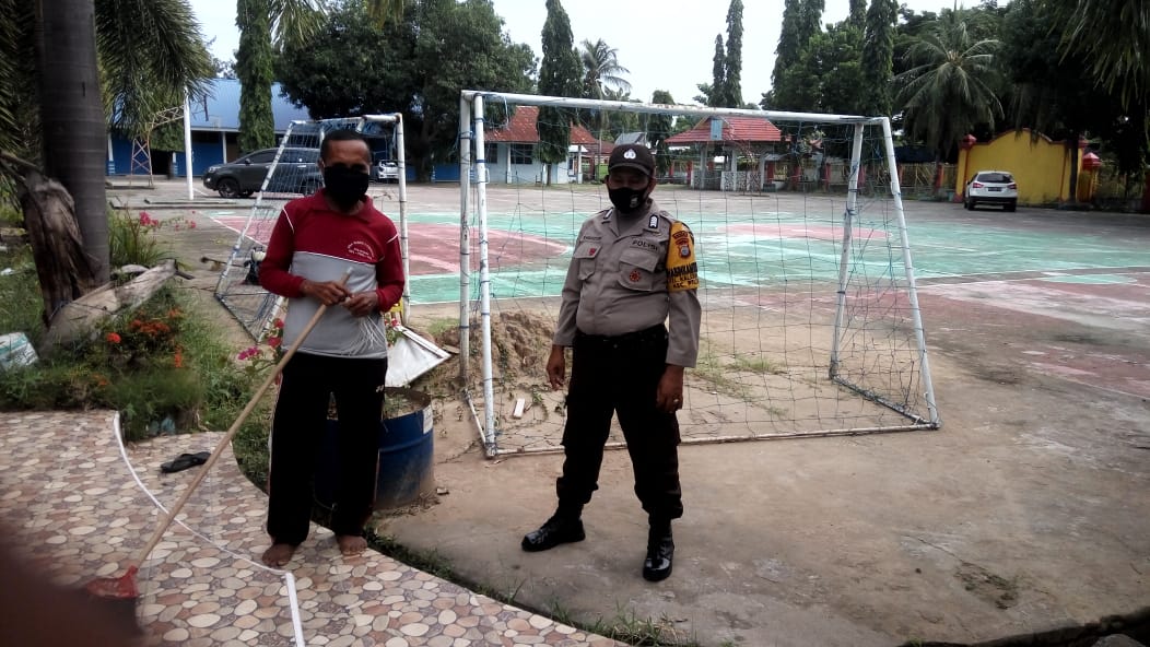 Bhabinkamtibmas Kelurahan Kalabbirang Sambangi Petugas Penjaga Sekolah