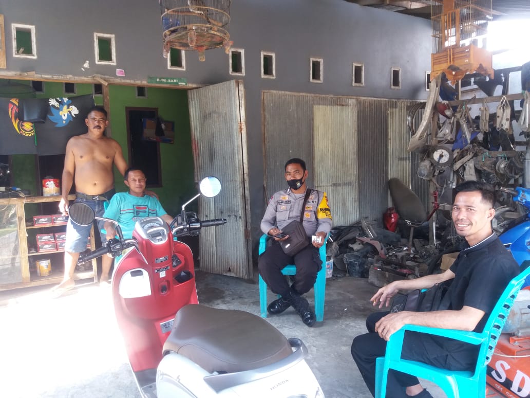 SULSELBERITA.COM. Takalar –  Bhabinkamtibmas Polsek Marbo Polres Takalar untuk Desa Topejawa Brigpol Amiruddin kembali Terjun langsung di tengah-tengah warga Binaannya dengan cara Door to door Sistem guna melaksanakan Sosialisasi Himbauan Pemerintah guna Memutus mata rantai penularan virus Covid-19 serta sosialisasi Maklumat Kapolri tentang Pencegahan Penyebaran dan Penularan Virus Covid-19 atau Corona, Rabu (24/06) siang.