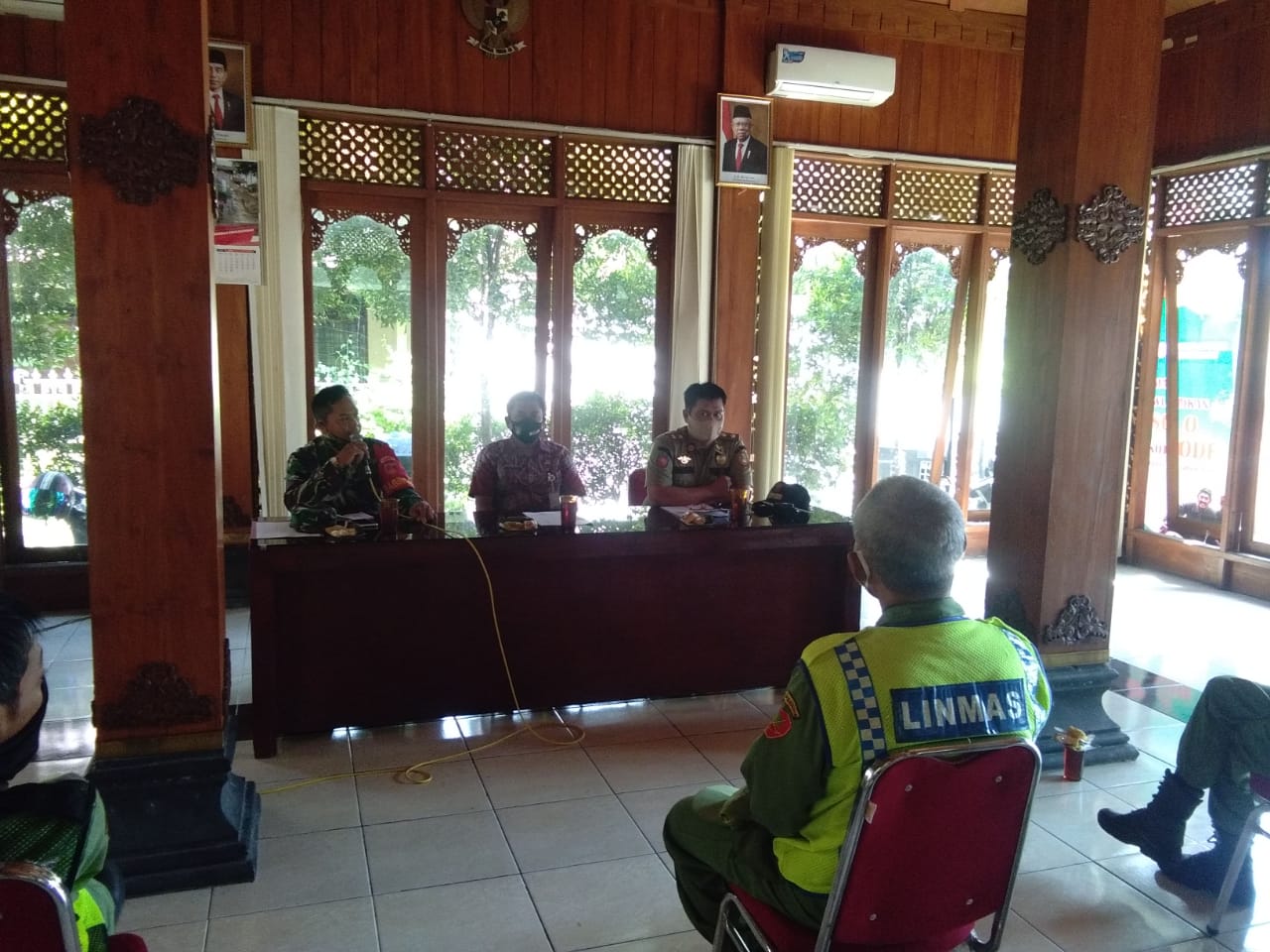 SULSELBERITA.COM. Surakarta – Babinsa Kelurahan Gajahan Koramil 05/Pasar Kliwon Kodim 0735/Surakarta Serda Agus Santoso bersama, lurah Gajahan(Suparno S,Sos.MM) dan Hari siyamto ( Kasi Bina Potensi Masyarakat POL PP ) melaksanakan Sosialisasi dan pengecekan Kesiap-siagaan Linmas di Pendopo Kel. Gajahan Kec.Pasar Kliwon Kota Surakarta Rabu 24 juni 2020 pukul 09.30 wib