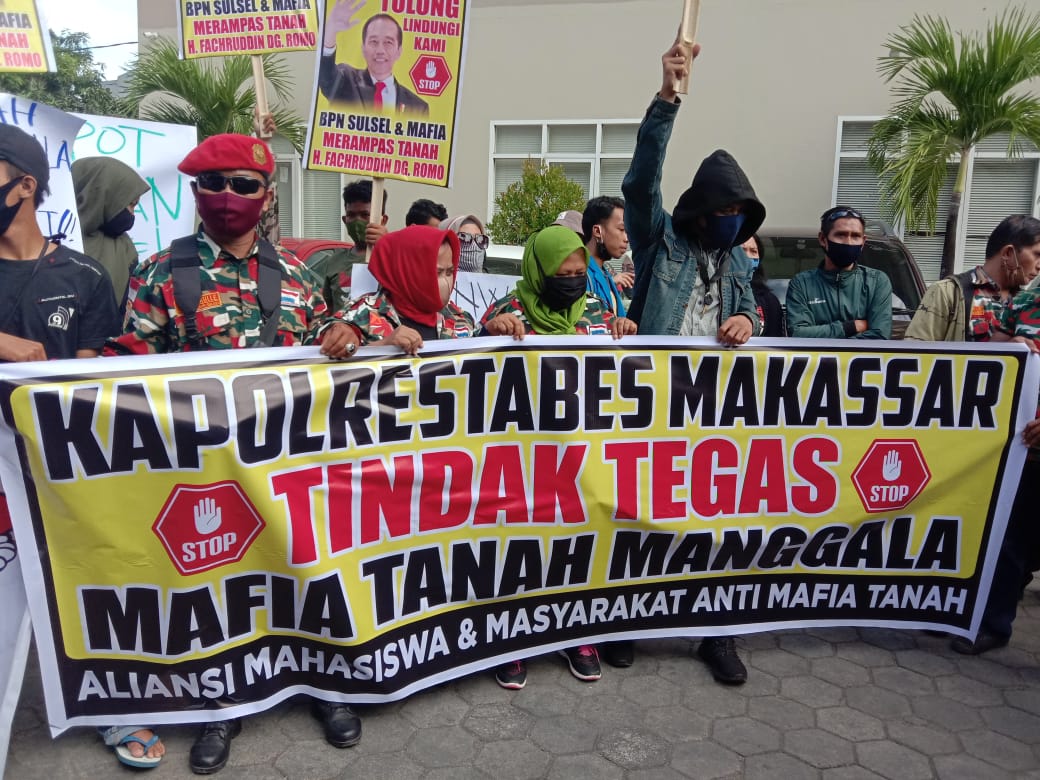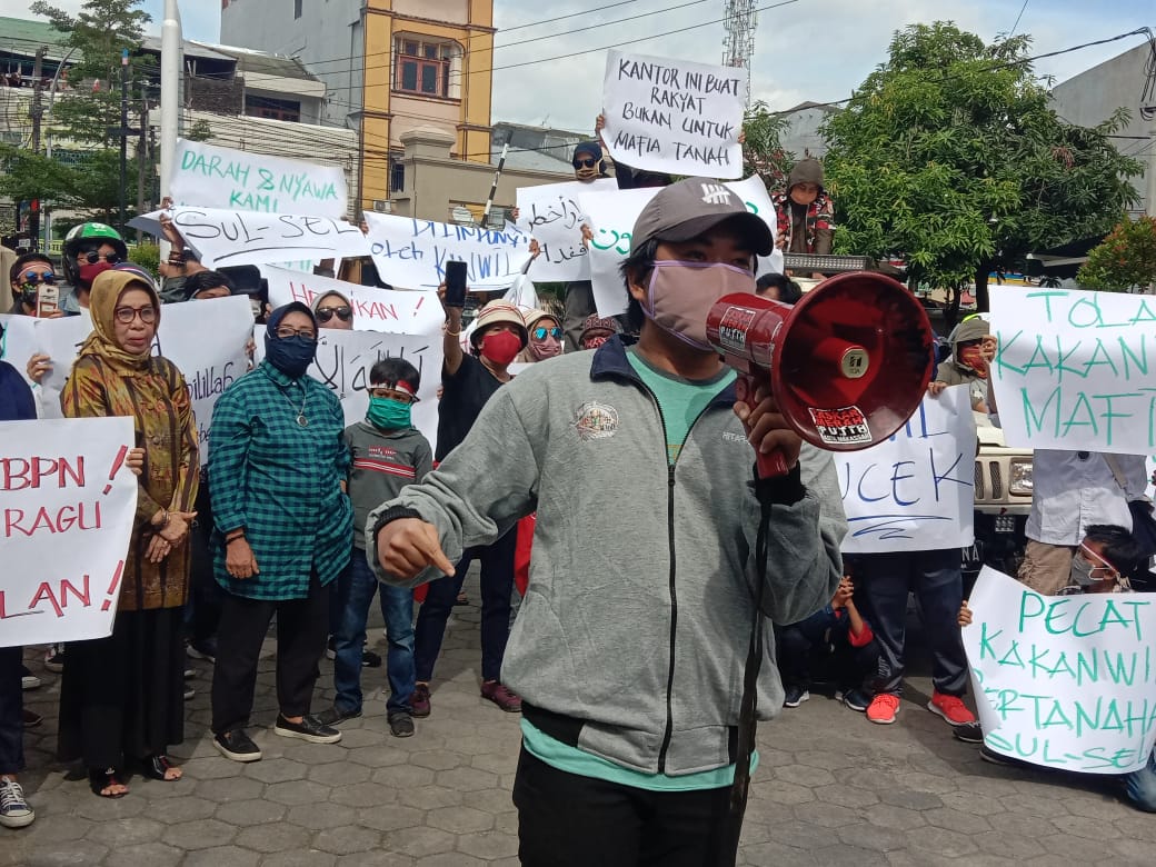 Maulana selaku Korlap aksi menuntut, “Kapolrestabes Makassar Tindak Tegas Mafia Tanah Manggala, Kapolrestabes Makassar Usut Tuntas Mafia Tamah di Manggala, Sofyan DJalil Jangan melindungi Mafia Tanah di Sulsel.” Tegasnya di BPN Sulsel.