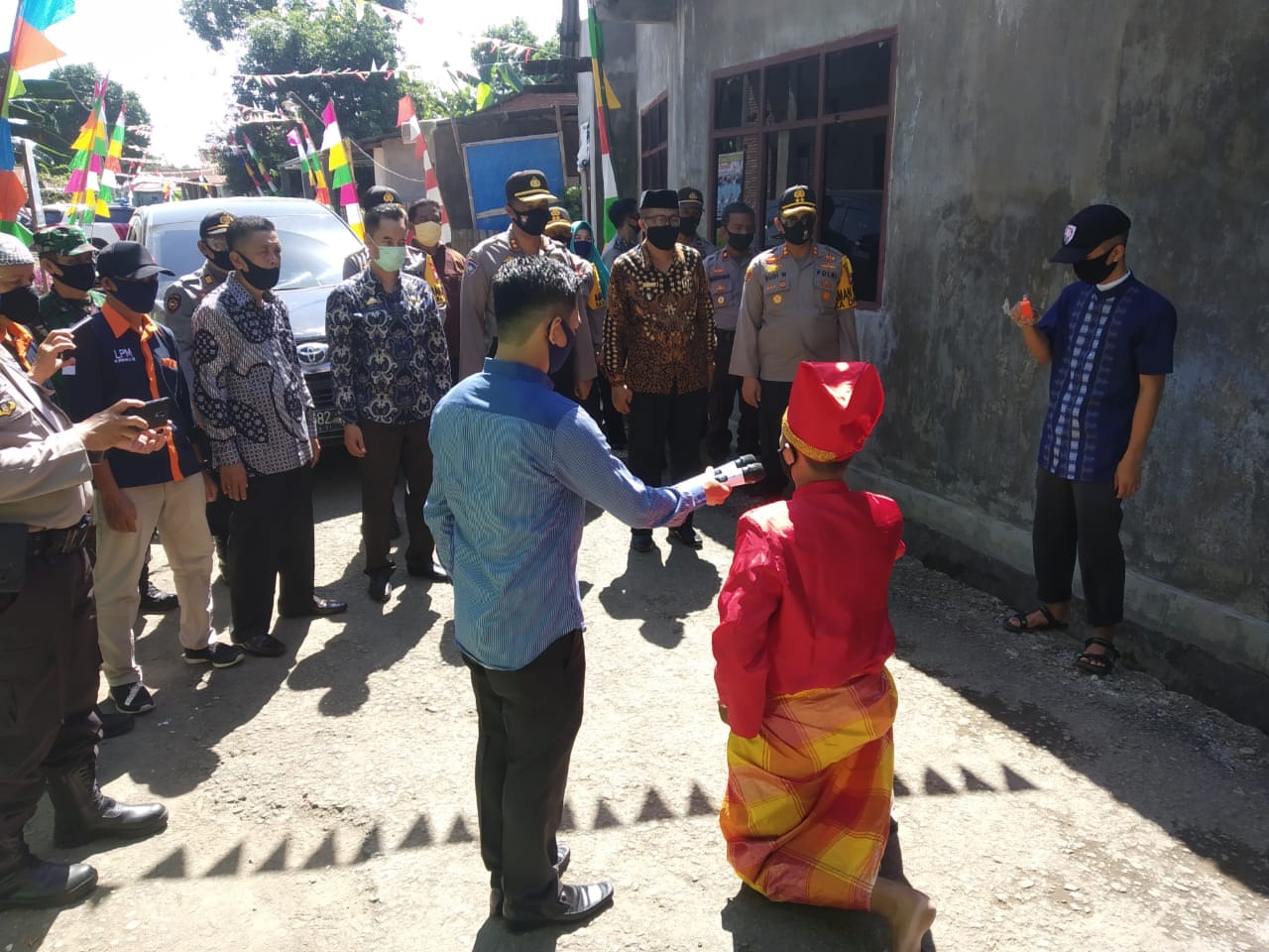 SULSELBERITA.COM. Takalar – Kunjungan Rombongan Tim Penilai dari Kepolisian Daerah Sulawesi Selatan (Polda Sulsel) untuk Perlombaan Kampung Tangguh Nusantara Balla Ewako, disambut adat Angngaru dan Tari-tarian. Yang bertempat di Desa Bontokadopepe, Kec. Galesong Utara, Kab. Takalar. Kamis (25/6/2020).