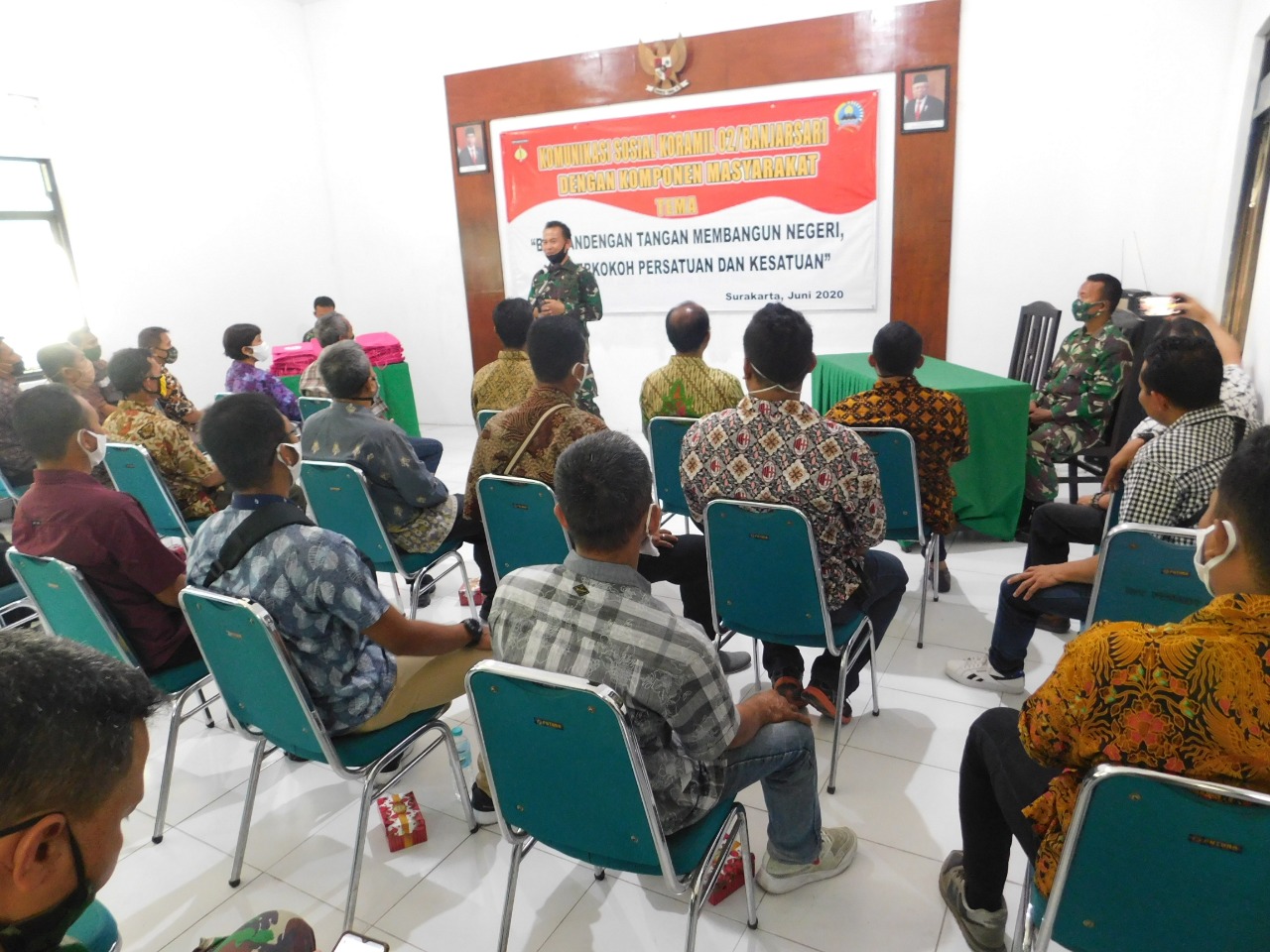 SULSELBERITA.COM. Surakarta – Untuk meningkatkan sinergitas dan  mempererat silaturahmi dengan segenap komponen Masyarakat yang ada di wilayah, Koramil 02/Banjarsari Kodim 0735/Surakarta Menyelenggarakan kegiatan Komunikasi Sosial (Komsos)) dengan Komponen Masyarakat Kec. Banjarsari di Aula Makoramil 02/ Banjarsari Jl A. Yani No 273 Surakarta Kamis (25/06/2020).