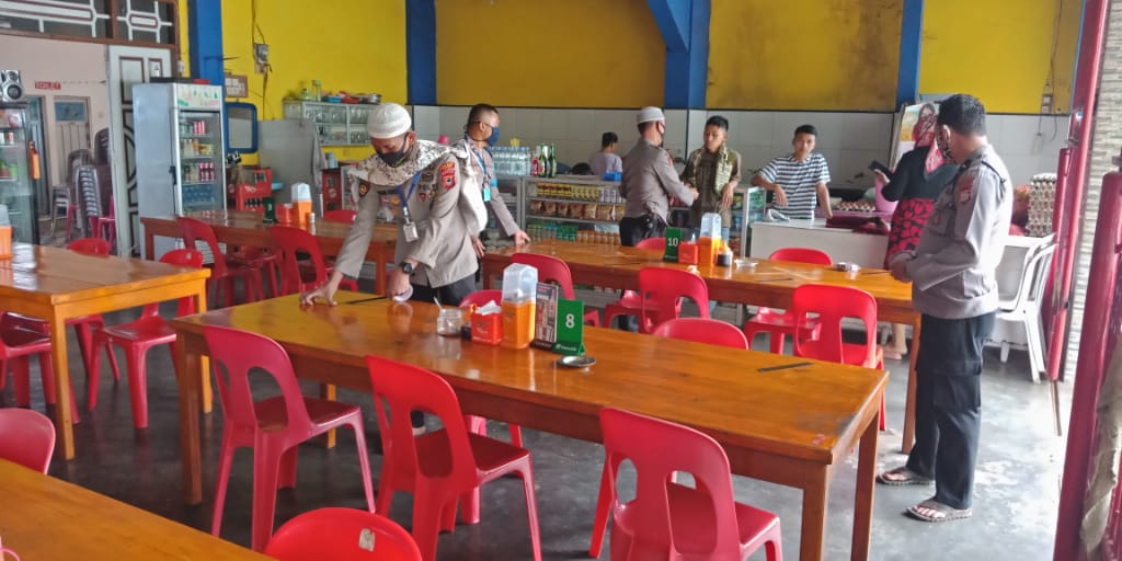 Dengan sikap humanisnya dan sopan santun, Kapolsek bersama anggotanya langsung menemui pemilik warung makan untuk memberikan himbauan serta pemahaman dalam memutus rantai penyebaran virus covid19.