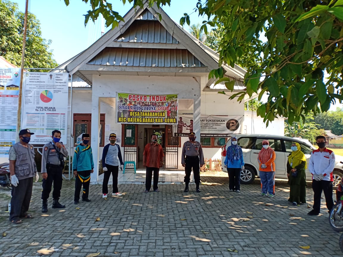SULSELBERITA.COM. Gowa, – Untuk mencegah penyebaran virus corona, Sabtu (4/7/2020), Kapolsek Bajeng Polres Gowa Iptu Sunardi, SH, MH didampingi Bhabinkamtobmas Desa Tanabangka Bripka Mawardi bersama pemerintah Desa, Elemen masyarakat melaksanakan penyemprotan disinfektan secara serentak untuk mencegah penyebaran virus corona .