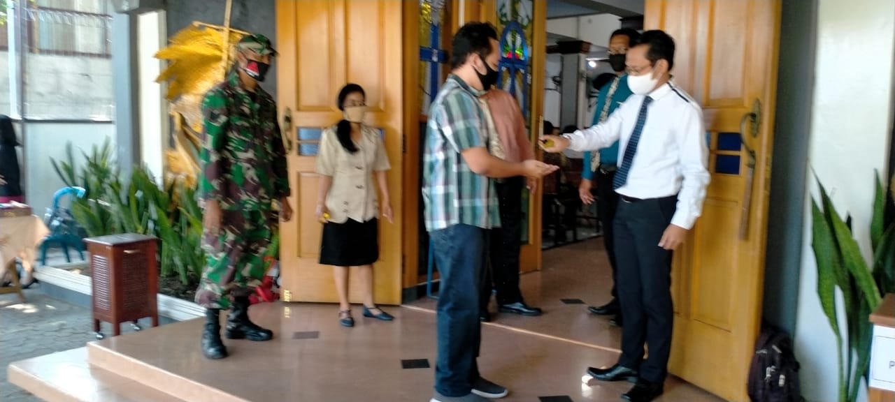 SULSELBERITA.COM. Surakarta – Minggu( 05/7/2020)  bertempat di  Gereja Kristen Jawa Nusukan ( GKJ) jl.Singosari Timur No 6 Nusukan Surakarta ,Babinsa kelurahan Nusukan Koramil 02/ Banjarsari Kodim 0735/Surakarta
